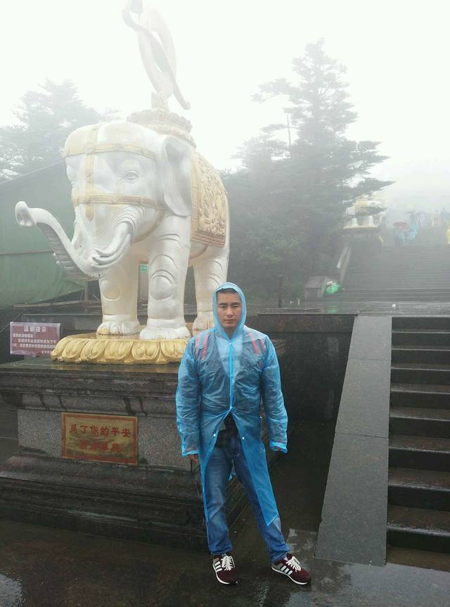 在接引殿吃了饭感觉浑身有劲,一会雨小了,便开始爬山了。恨自己过于谨慎带了太多的东西,从接引殿到金顶爬了两个多小时,中间歇了五六次,还是累成狗。这里提醒大家,吃的没必要自带,上面吃的不是太贵。金顶上面真大,顿时感觉人类真的太伟大了,那么高的山上,到底怎么弄上去那么多东西。可是偏偏当天一直蒙蒙碎雨,很不舒服,看不清各种景点。