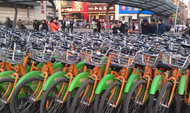 六味斋门口的公共自行车