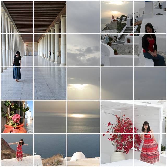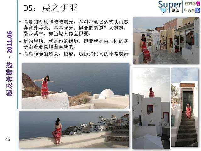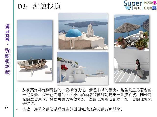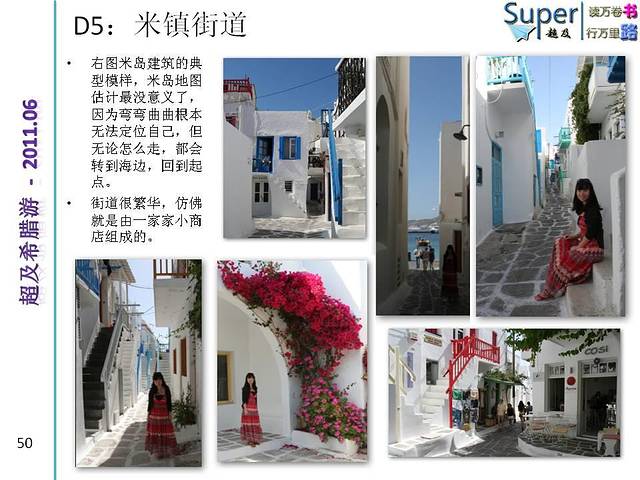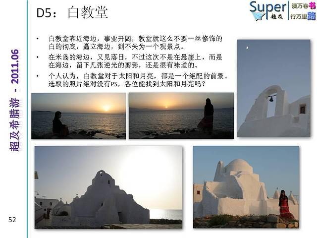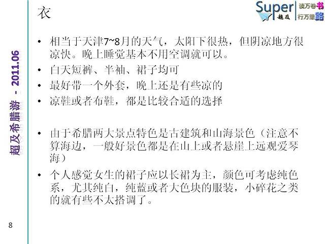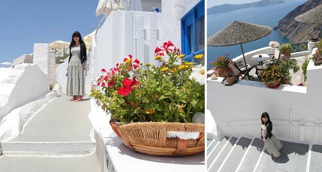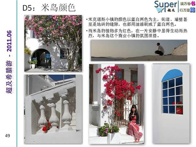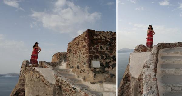 由于希腊两大景点特色是古建筑和山海景色(注意不算海边,一般好景色都是在山上或者悬崖上远观爱琴海)。个人感觉女生的裙子应以长裙为主,颜色可考虑纯色系,尤其纯白,纯蓝或者大色块的服装,小碎花之类的就有些不太搭调了。