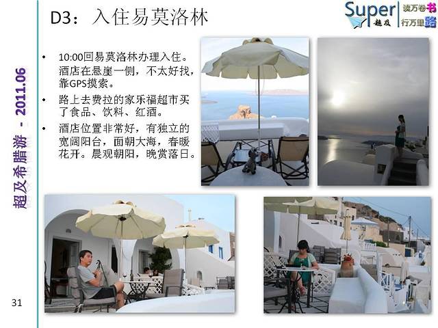 大概是3个小时左右到达米岛,到港口打电话,5分钟就到了,老板人很客气,很热情,酒店老板提前已经通过邮件联系,在码头接我们。车不错,宝马X5,呵呵,贵宾享受。承诺离开的时候,负责送到机场。