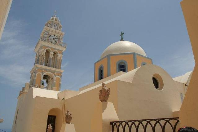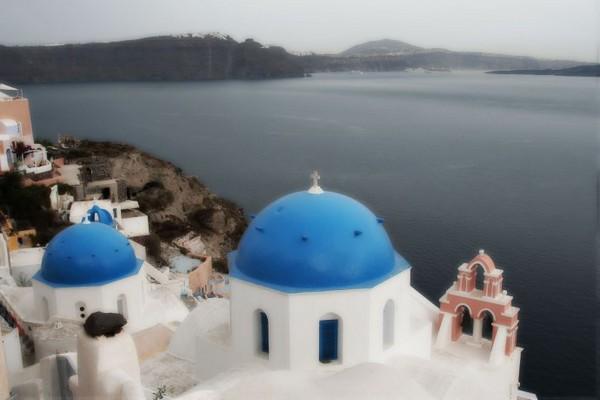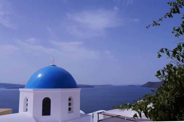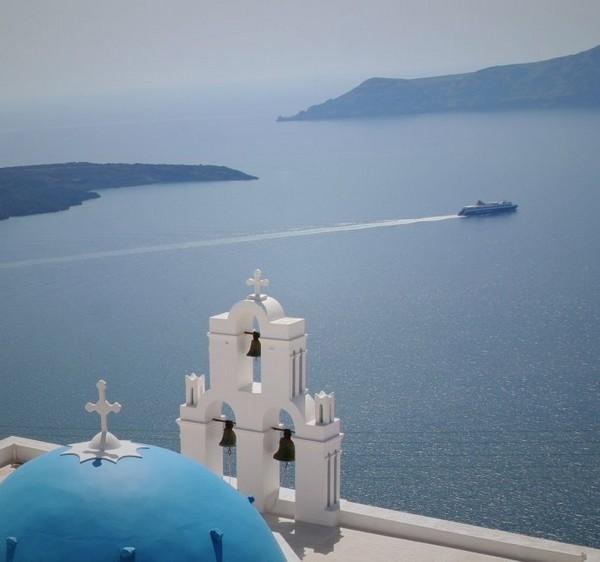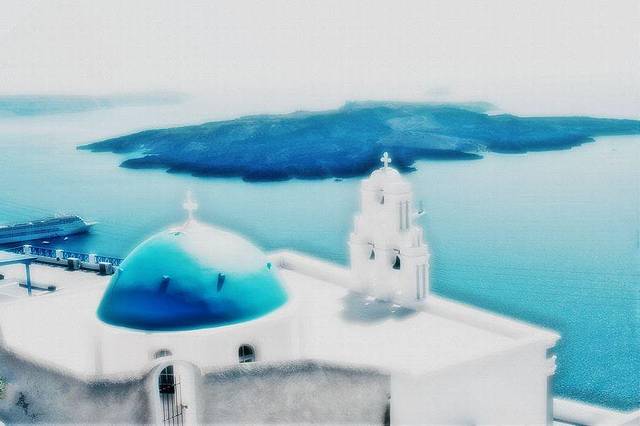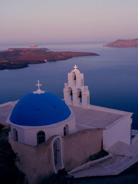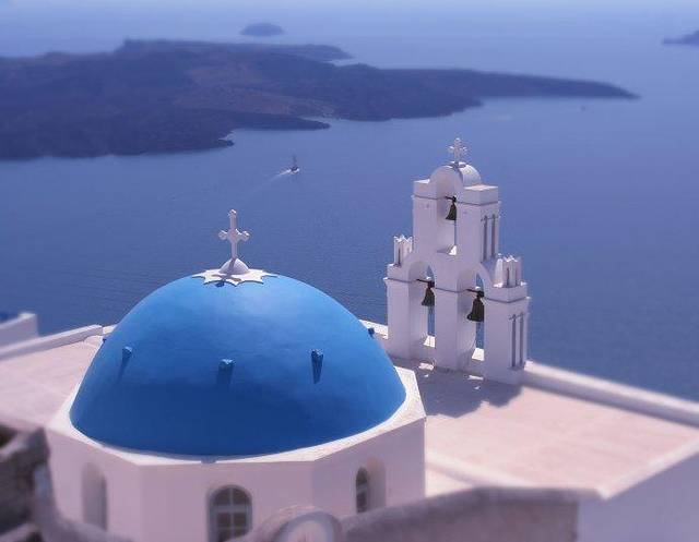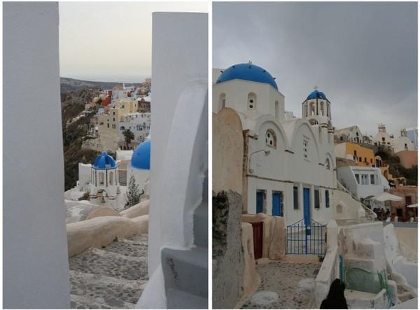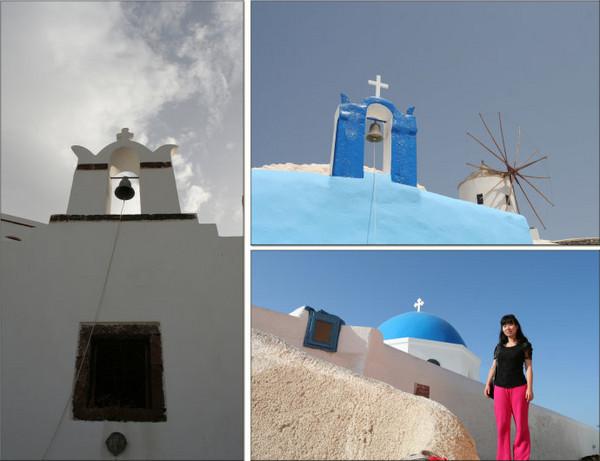 始终觉得,伊亚的蓝顶教堂丝毫不逊色于费拉那座蓝顶,三个相异的蓝顶凑在一起,配上黄色钟楼,视角也更加多变,可以登高俯视,也可以近而仰视。