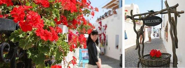 自然景色也会影响着人们对美的理解,伊亚的门口路边,都会是很精心的装扮布置。让我们不自禁的停步流连。