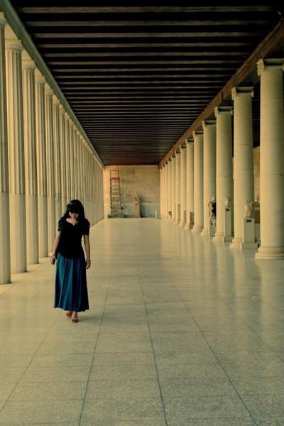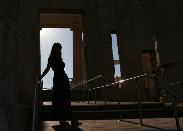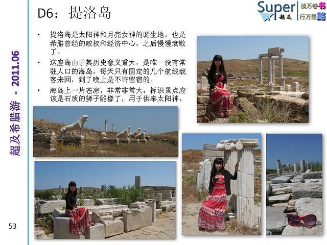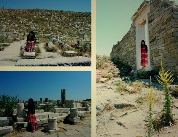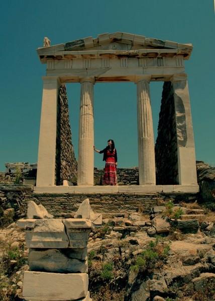 提洛岛地大,遗迹多,人少。一船的人靠了岸,居然很快就互相找不见了,仿佛所有的遗迹只为你一人而存在,想怎么留影都行。提洛岛最上镜的古迹是古叙利亚神庙,游人可以随意站在高高的神庙平台上追昔怀古。