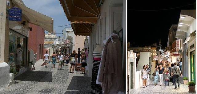 全岛除了教堂,没有太高的建筑物,奢华如爱马仕,也是低檐矮屋,小小一间。小巷的路边多是商铺,各式的纪念品,服饰箱包。