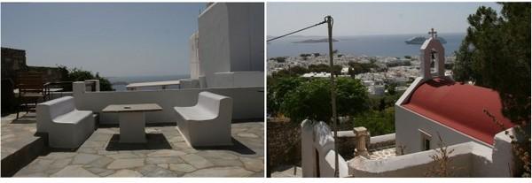 由于第一天入住晚,按70欧算,房间宽敞明亮,推开窗户是一片公共的露台,可看到风车、大海和落日。住宿离岛中心的米克诺斯镇有些距离,在镇外的山腰处,从住宿的地方刚好眺望米克诺斯的小镇和港口。好在不算远,步行前往不算辛苦。