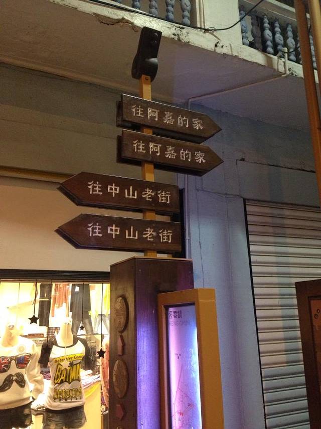 满心期待着沐浴在淡水的暮色中,看落日染红长河,看黄昏时分,淡水河摇晃着投入其间的夕阳。可惜我在淡水天气阴,本以为会扫兴而归,孰料没有落日的淡水,略带着淡淡的微风,淡淡的哀愁,淡淡的美好,就那样淡淡地出现在我们面前,温暖着我们一路略带疲倦的心。出捷运淡水站,不一会就可抵达淡水老街。褪去风华独留风情的淡水老街,一座座闽式、日式、西式建筑林立,默默地诉说着几百年的历史云烟。古董店、民艺品店轮番出现,在这边可以买到很多有趣的台湾老玩具,民俗色彩与怀旧味道十足。当然千万不要错过专属淡水的小吃:阿给、铁蛋、虾卷、鱼酥、鱼丸……(不过阿给看着不好吃,也就没吃;铁蛋还不就是皮蛋,也木有带回)