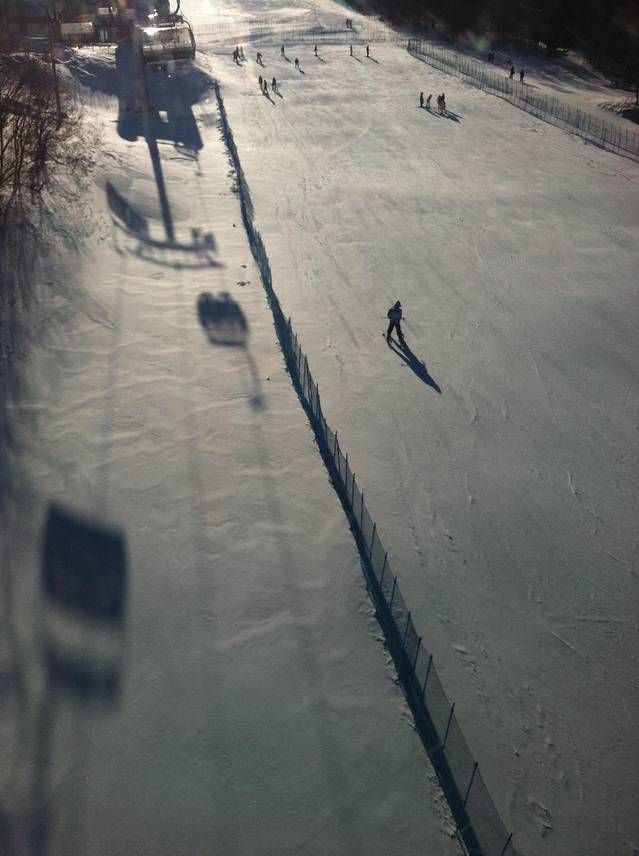 网络订票,景点现付,在新体委滑雪场内,主要是大锅盔山坐缆车观光,缆车分三段,前两段很平淡,第三段不是包厢式,是敞篷式,保暖措施一定要做好,恐高者还是慎重选择,本人平时不恐高,但是看到缆车挂在一根细细的钢丝上,无人的缆车随着大风左右摆动,看着山下就是白雪的山,缆车不时发出摩擦的吱吱声,我还是有点怕了