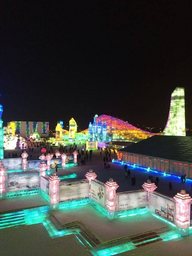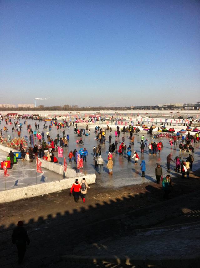 吃过午餐后已经是下午四点多了,天色渐渐黑下来了,东北的冬天黑的比较早,我们之前在网站上定的票288,旅游回来有点评奖金,中央大街有免费的接送车,票价300,不在车上买票收了每人10元的车费