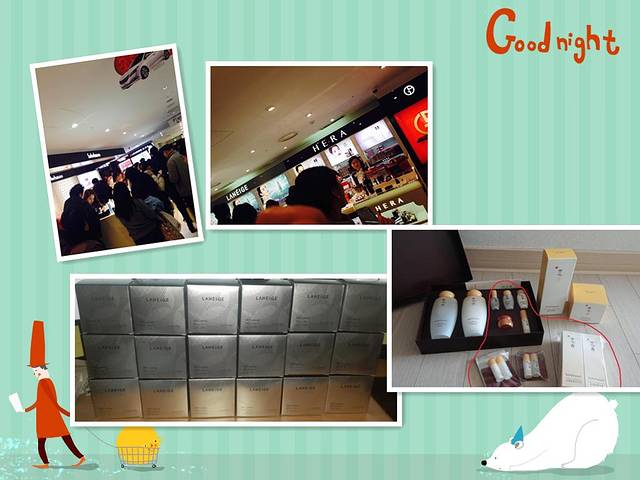 利用春节假期来韩国自助游,这次跟爸妈一起来的。平时这个时间都在家里互相走亲戚呢,这次感觉不一样了,感觉了不一样的年味,韩国的年味确实没有国内的重,不过据说他们的圣诞节倒是非常隆重。来到明洞,明洞到处可以见到中国人。各种打折的优惠活动处处可见。不禁也勾起了我的购物欲。感觉明洞像是中国的某个城市,因为到处都可以听到中国人说话的声音,像是在自己的国家一样,只不过来自各个城市地区的人都有,哈哈。在明洞逛街自然少不了乐天百货的购物,乐天商场感觉很有的逛头,只是时间有限,还是抓住了最主要的免税店,来到免税店当然少不了各种化妆品的疯狂掠夺。乐天也非常给力,各种优惠活动满足了中国人的各种不同的胃口。说起我来,我是大学生,年龄不是很大,我喜欢用兰芝,感觉兰芝这个牌子出个各种化妆品都能满足我的胃口,无论是护肤品还是彩妆都很喜欢。同寝室的朋友也很喜欢它们家的护肤品,这次还拜托我带了好多回去。我当然也不能辜负朋友的重望。妈妈喜欢用雪花秀,因为我生活的地方是中国二三线城市,感觉买雪花秀兰芝这些似乎要比其他城市贵好多。来到这些品牌自己的家乡之国,真的感觉特别实惠,尤其是免税店,从人山人海的趋势来看就已经知道这些化妆品在韩国有多么火。妈妈平时都是舍不得花钱的人这次也跟捡到大便宜一样疯狂的买。来晒晒免税店人山人海的趋势吧~!