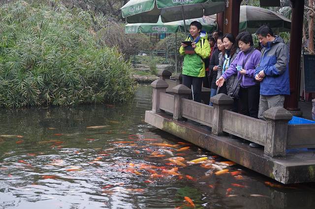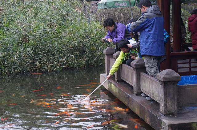 顺便逛逛人民公园,偶遇一池硕大美丽的锦鲤,他们还没吃早饭正等着喂食呢,个个兴奋的游来游去在抢早餐好位置。我等岂能袖手旁观,喂完饲料喂奶瓶,锦鲤吃奶瓶也会发出咂吧咂吧响声,和婴儿一样可爱。
