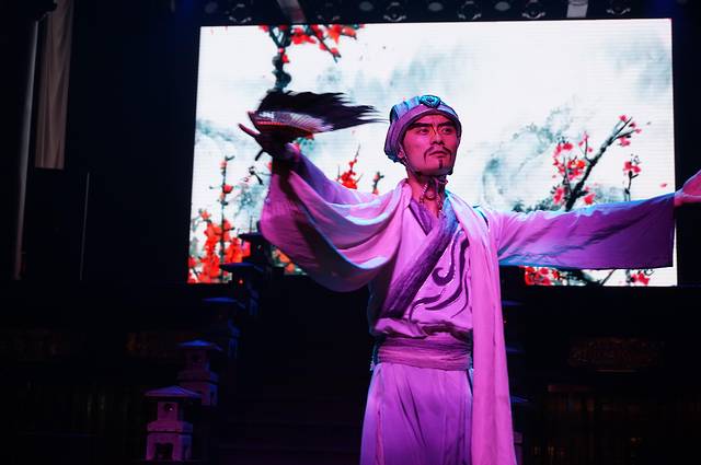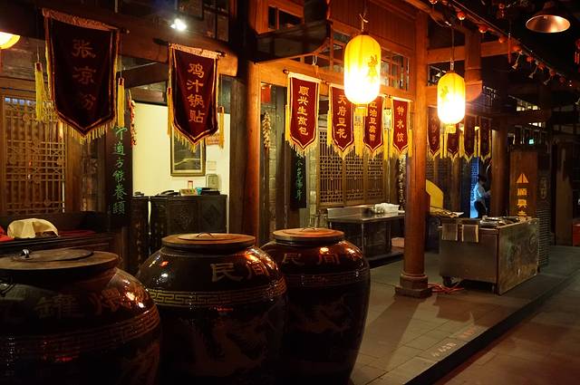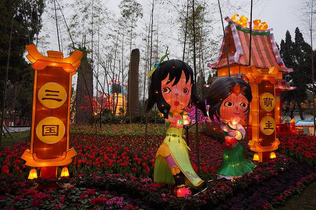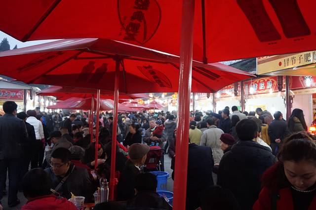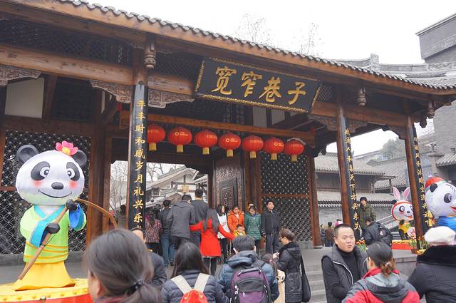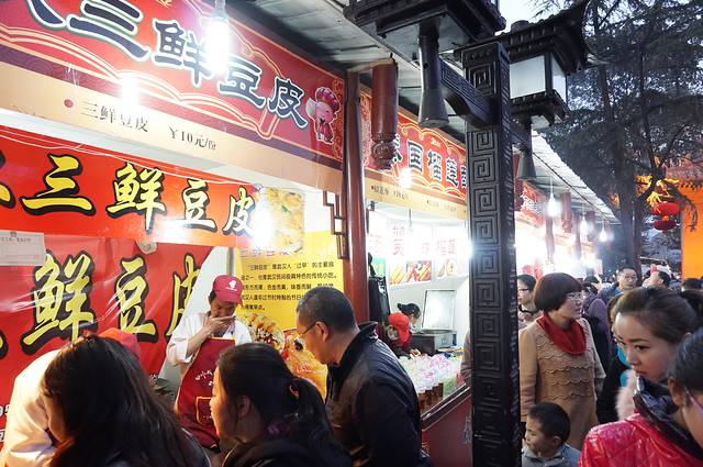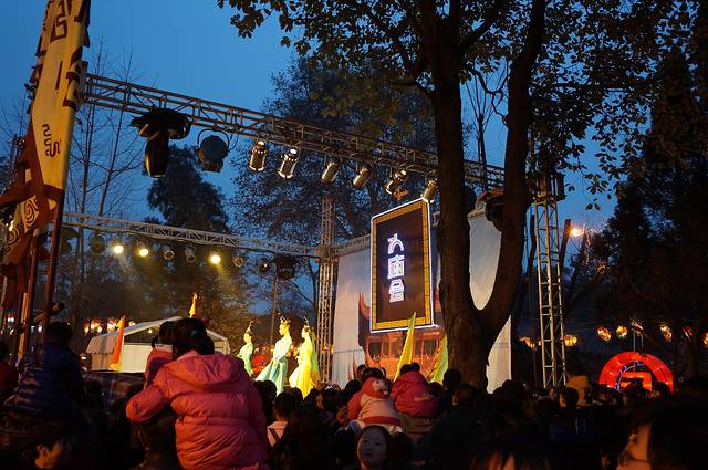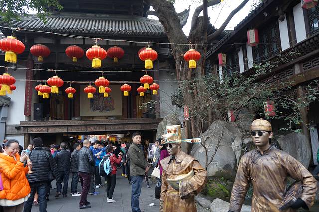 下午先去了锦里小逛,原计划看三国茶社的变脸表演,后来发现了结义楼还有更精彩的主题演出,果断变更!提前去结义楼预定了晚上7:30的“乐舞三国”表演第一排贵宾坐,然后定心去看看灯会、品品美食。重要提示:锦里、武侯祠、庙会虽然连在一起,但是范围较大,小巷、祠堂、花园、围墙纵横交错,再加上游客拥挤行走不便,就是问人指路也是一头雾水,我们问保安居然也指错路。随便顺一个方向乱逛逛也就罢了,如果要在指定时间回到特定地点,一定要有心记忆一下方向和标志才行,不然演出完了你可能还没回到表演的地方啊。