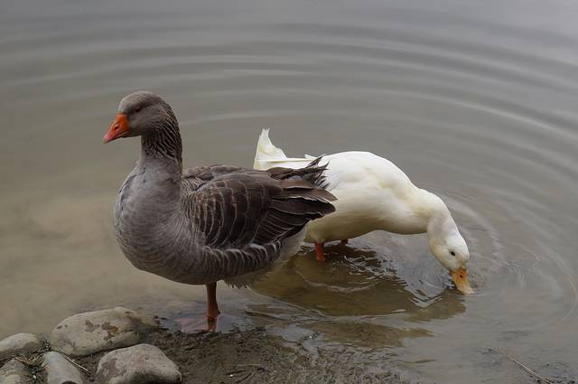 看池边两只慵懒的鸭子,我们也闲静了