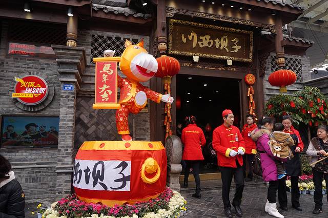 计划的中午大餐是朋友推荐的钟鲶鱼,专程打的到了著名的成都美食一条街“一品天下大街”,可是钟鲶鱼要年初八才开张,这就是没有提前打个电话的教训了。还好出租车师傅推荐了旁边不远的川西坝子火锅,总算有午饭吃了。