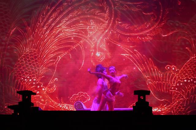喷火和女子变脸表演