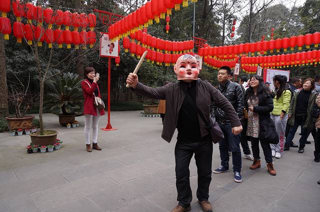 杜甫草堂本不作为我们这次旅游的目标的,但四川博物馆离的近所以来逛逛。没想到一进去还不枉此行,里面正举行春节游园活动和鲜花展览,再加上今年暖冬,院内梅花提前盛开,好一派春暖花开、笑逐颜开的景象。