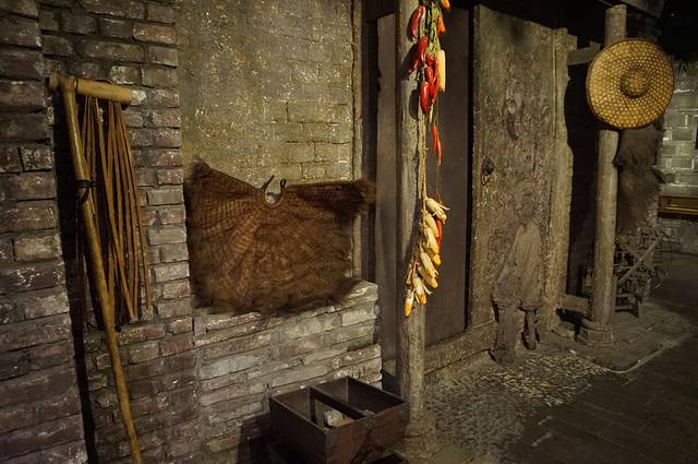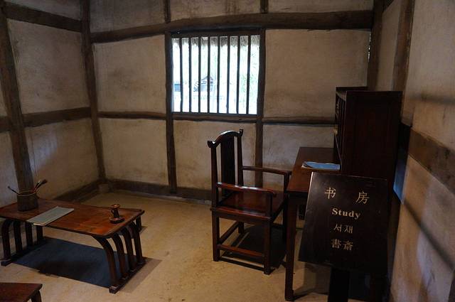 茶馆一角,旁边展示过去的老爷房和闺房