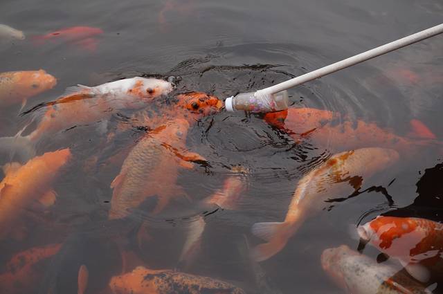 自己还没饱,先喂了锦鲤再说