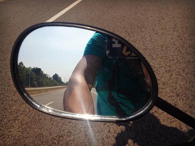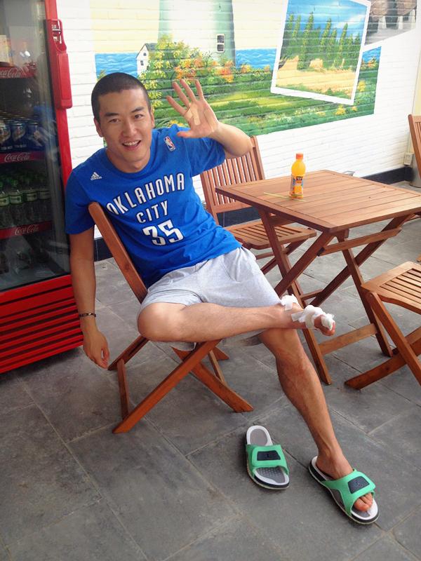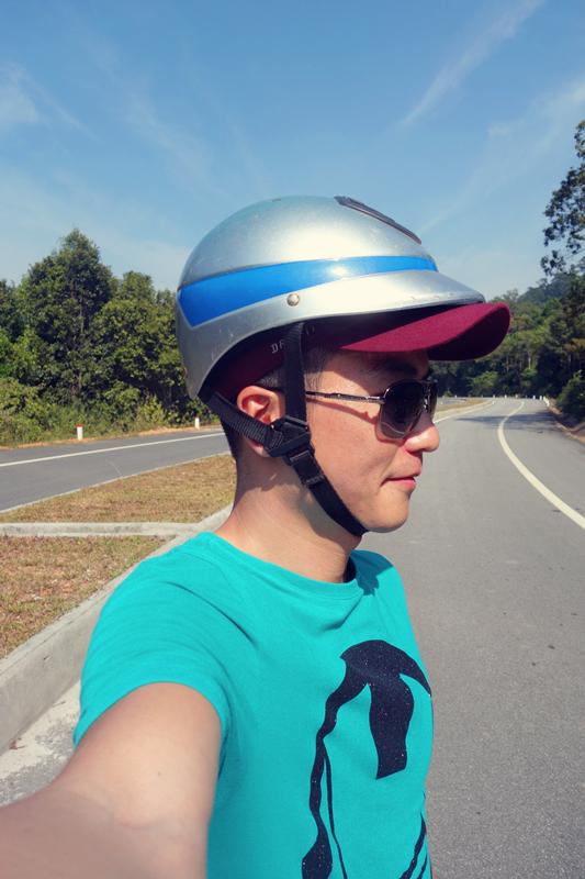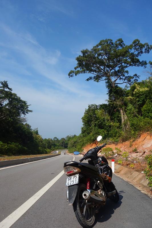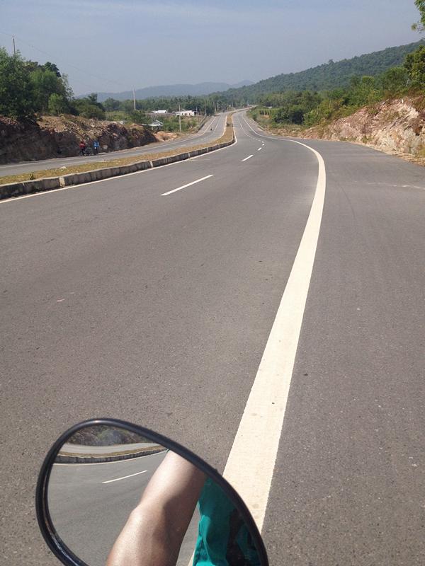上面说到楼主没有自拍的勇气,但奈何整条路上实在是没有过往的车辆,别提行人了。我骑了四五十分钟,见到不超过十辆摩托。So,厚颜无耻的自拍一张。就在这之后不久,就从天堂掉到了地狱,车翻了。。 连着几天跟团,实在够累。今天索性一觉到中午,彻底休息了下。几天下来跟酒店的工作人员都熟了,在大堂跟他们讨论今天没什么具体安排,有何建议。他们一致说起了前面我提到的Dai Beach,据说也是水清沙美游客少。说到这里,我一想正好没能体验摩托车自驾环岛,拿着地图问了下大体方向,让他们给我们租了辆自动挡摩托。我当时特意交代,贵一点不要紧,但是要尽量新一点的车。