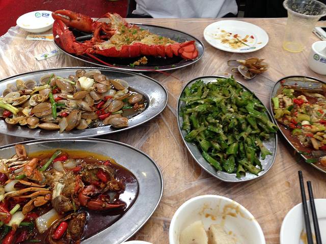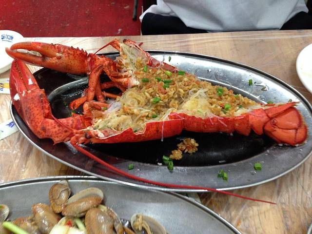 媳妇爱吃辣,慕名前往四川小胡子海鲜加工店。有店员带领去市场买海鲜,里面那个人山人海,自己转肯定会晕的,店员帮忙挑了龙虾、蟹、芒果螺、扇贝,他们知道行情,感觉可以避免被宰。龙虾180,两只蟹50,扇贝50(据说本来应该45,讲价未遂,感谢那位店员大姐帮忙还价),芒果螺10元。回到店里又点了芒果汁(非常推荐),椰子饭,还有一个菜,龙虾只要了清蒸,再加上加工费一共172元。海鲜洗的很干净,代价是要等久一点。很是鲜美,香辣蟹和龙虾非常赞,很入味,辣的很爽的时候来一口芒果汁更爽了。怀念龙虾,怀念芒果汁。