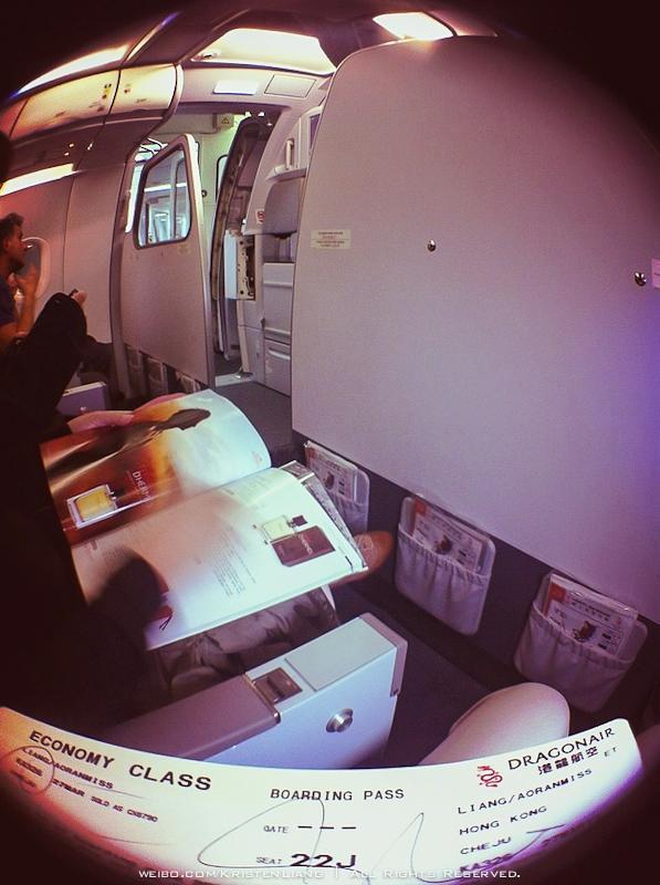 買機票時只剩下40多行的位置,但在香港市區**check in時給了22行,上飛機一抬頭 哇噻 22J是第一排!!這已經是第二次在市區辦check in拿到好處了。