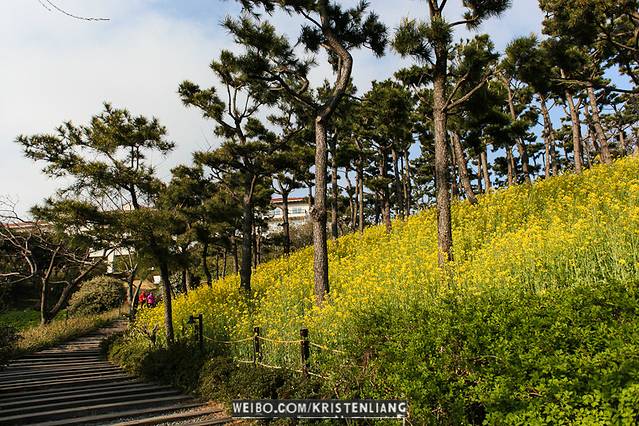 像我前面說的,樂天酒店和新羅酒店 SHILLA 是連著的,下面的圖片就是SHILLA的向海花園---> 一片油菜花供人拍照。