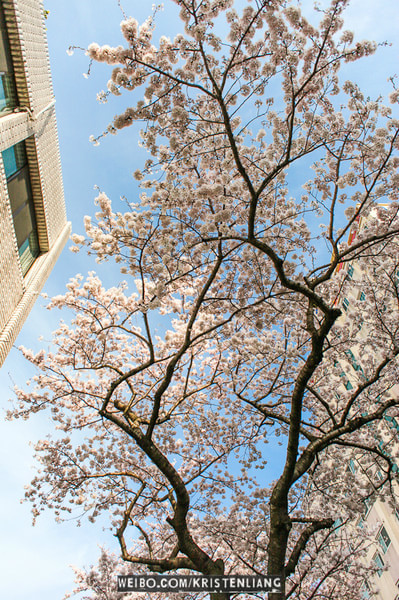 3月底的時候西歸浦的有些櫻花樹已經開始長業了,落了慢的的花瓣。