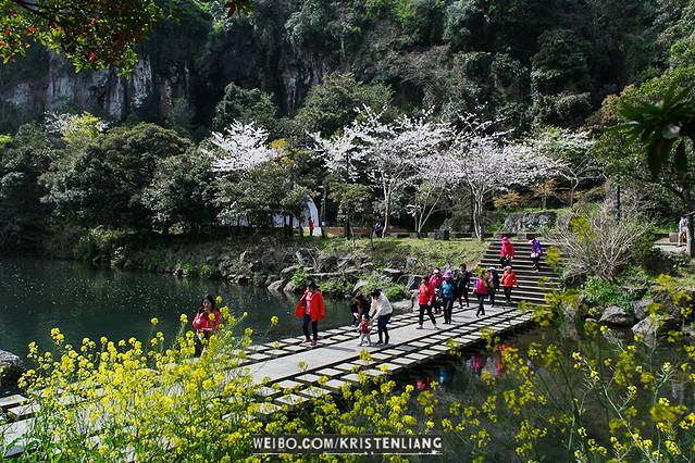 其實天地淵瀑布並沒有什麼好看的,但那邊環境挺不錯的,都是慢慢在散步的遊人。裡面有油菜花有櫻花有桃花,可以在那邊休息休息