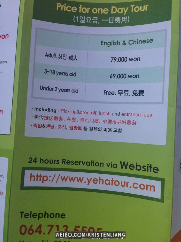 一日團分東部和西部路線,適合沒有什麼時間,也不想煩惱去哪裡玩哪裡吃的朋友。行程算是豐富的,但不算深度吧。詳細行程見下圖。成人每人79,000won(RMB440)包括中文導遊、門票、午餐,和指定酒店接送服務。網上預約,詳情看圖片: