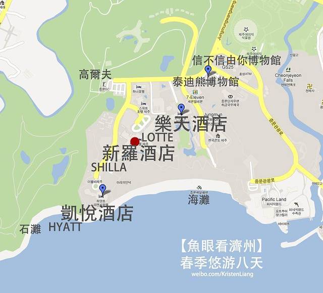中文旅遊區沿海有三家五星酒店:凱悅HYATT,樂天LOTTE,新羅SHILLA。三家是連著可以互相走得通,有很多非住客去玩。但如果選一家來住,我的首選是HYATT。第一,HYATT的有著360度海景房(我的房間是一半海景一半火山景)比起樂天比較安靜,我更喜歡這種感覺。第二,我喜歡HYATT旁邊的那個石灘!樂天酒店房間大很多,設施各方面都很新很多元化,適合一家大小去玩!新羅也蠻新的,就是沒什麼特色,除了有playstation遊戲室~ 必須一提的是,雖然三家酒店的服務都很好,但就英文溝通來說樂天和新羅真的差勁,我在HYATT對上話的幾個前台、行李部的,英文講得可好了。不像樂天新羅,問完一個還要重復問另外一個。(更多圖片介紹留意下面的遊記)