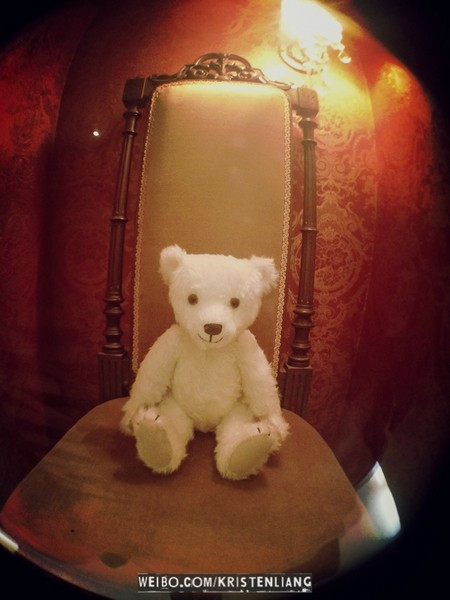 say hi to my new buddy Alfred。這是宮裡面信王子的那隻熊!商店裡一眼就看上他了~ 這個萌呆有肚腩的傢伙!!