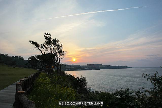 第二天早上在山下看日出,下午從城山日出峰走路去鳳凰島(約2.5小時)。鳳凰島和涉地可支都在濟州的東海岸,一望無際的海景,加上油菜花、玻璃屋、教堂等都是韓劇拍攝地。傍晚去濟州市的龍頭巖,以及兩個點看櫻花。