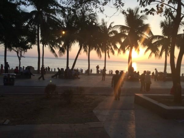终于走到了,太阳都落山了,在椰梦长廊的尽头留念。。。腿已经不是自己的了。。但是这顿自助很赞,大家可以搜搜龙悦海景大酒店,吃完坐8路回去,坚决一步也不走了~