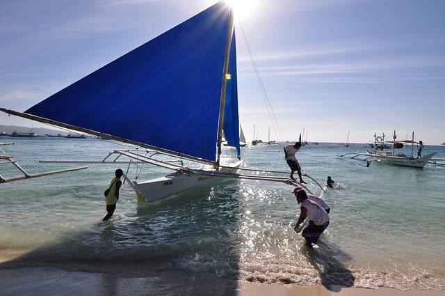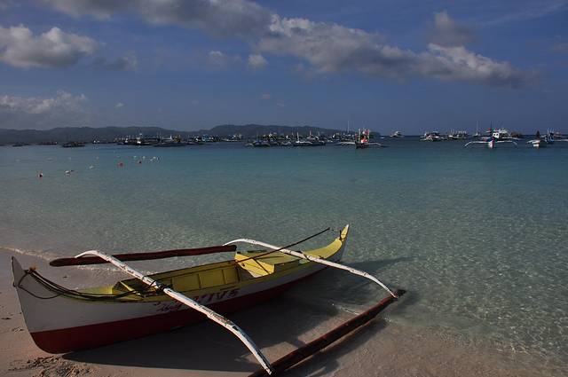 螃蟹船:没有坐船看日落,我觉得沙滩上已经很美了,坐船出海走了一遭,为了好玩和体验。很爽啊,这是长滩的特色,就是奇怪为什么当地没有螃蟹船的模型卖呀,那里的旅游纪念品都像温州出的,要是上面不写boracay的话带回来朋友会以为我去的是三亚的吧。
