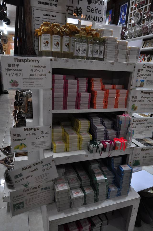 此行从长滩买了冰箱贴100比索8个;当地的肥皂,35比索一个(薄的),各种颜色代表不同的材料,有海藻的、木瓜、椰子的、芒果的等等;椰子油240比索一罐,据说是很好的精油,回到上海都冻成白的膏了,看来的确正宗;还有3小瓶白沙滩的沙子,100比索;芒果干自然也不在话下了。