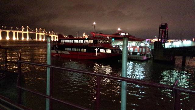 从澳门回香港是已经晚上九点了。因为晚上起风了,天气不错,做了1个多小时就到了香港