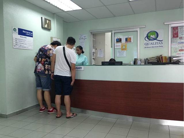 这个时候靖驴他们感到前所未有的压力,这里所有人都不会中文,我用手机应用先将需要告诉医生的话翻译出来,到我看病的时候,小黑一起陪同进去还翻译给医生听,这个医生超级可爱,比划很形象,他问我有没有拉肚子时超级可爱,他指着自己的PP,然后手拉成一条线,我要是看不懂就太傻了吧,我对他说NO,然后就比划我没有拉肚子只是呕吐,接下来大家都笑了,他说OK,OK,真是搞笑,我就跟一个出来考察马来西亚医疗机构的人士一样,到处看医生。测体温,39.9度,医生马上给我打针,然后对着吉隆坡医生给我开的药比了一个大拇指向下的手势,我震惊了,难道斗湖这个小地方的医生会比吉隆坡的强?难道国外也有偏远地方的神医比大城市的专家强的现象?