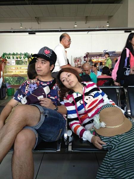 吃了一小块面包之后,我服了药,在机场就睡着了。妹妹偷拍我醒来一张,看看我要死不活的样子吧,自己都觉得讨厌。不过这个药还行,一觉之后感觉好很多,要登机时我都可以哼歌了。