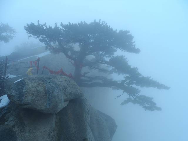 这次来华山运气不好,整座山都是雾雾雾雾雾~~~爬完一天的山,我真不知道华山长成啥样!千里迢迢来趟华山,只可惜“不识华山真面目,只缘身在浓雾中”!在山上偶遇了一只小猫咪,饿得冲我喵喵叫,喂它吃了一整块蛋糕后,它摇了摇尾巴,摆了一个超级慵懒而又性感的下腰POSE,然后走也不回的。。。走了。。。