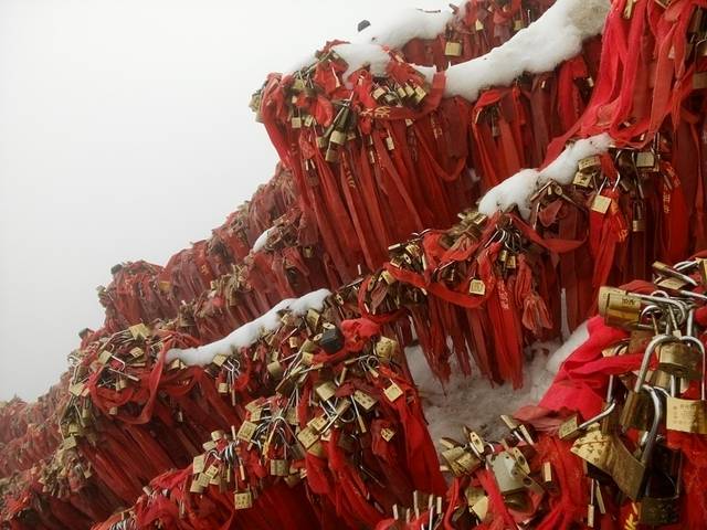 直接到达华山游客中心的游1,同样在火车站东广场乘坐,每天往返各三趟,早上7点半发第一班,下午5点为最晚返程班车,2小时路程,22元/人。如果没赶上客车没关系,可以乘坐华山北的动车,每天班次很多,下车后选乘公交或者出租到达游客中心。华山分为东南西北中五大峰,其中海拔北峰最低,南峰最高,索道有北峰、西峰两条线路,如何抉择怎么上山,售票大厅有免费咨询台为你提供服务。我们考虑到要去南峰走长空栈道,离西峰最近,担心从北峰上山再爬去南峰会过度消耗体力没心思去长空栈道,就选择了西上北下路线。如果想体验一次纯粹的爬山,请晚上行动,爬到第二天清晨直接在山顶看日出,也是不错的选择,售票大厅24小时售票。