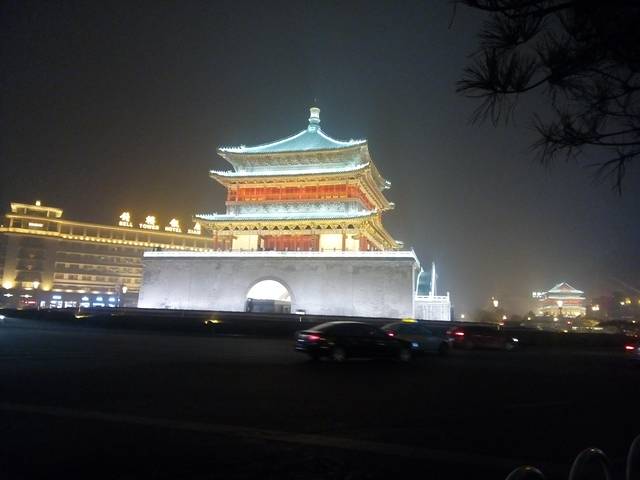 走出回民街,你就会看见钟楼,矗立在环形路中心,如果你想上楼参观,请走地下通道。像我们就闹了一场乌龙,开始并不清楚钟楼周围是马路环道,于是在地下通道里面转啊转,从这个出口上去,钟楼在我们背面,从那个出口上去,钟楼还是在我们背面,如何接近钟楼是个迷吗?事实上钟楼就在我们头顶上,入口在地下通道内,地面没有类似小广场的地提供给你拍照。西安的道路指引是东南西北,我们重庆人指路只会前后左右上坡下坎,导致之后每次来到钟楼下面的地下通道就如同噩梦一般,基本上没有哪次是一次性就找对我们目标中的出口。上钟楼参观,50元。我们没去。