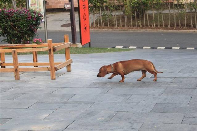 洗完澡后出门已经是6点左右了,天慢慢暗下来,我们急切地想快点找食物填肚子。院子里有个游泳池,人很少,看到有妹子穿着泳衣在拍照~然后又偶遇腊肠狗,嘎嘎嘎,这次有摸到他,长得挺壮的。