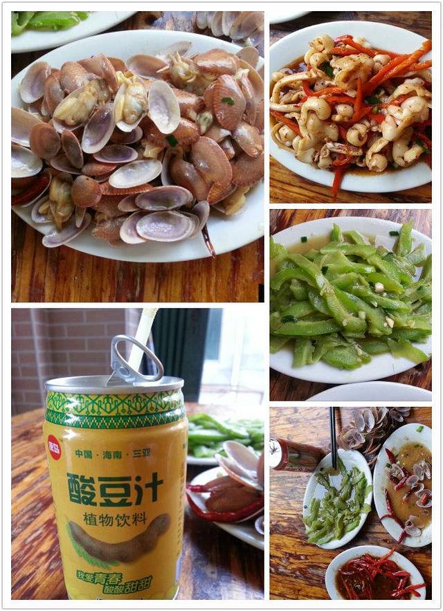 老板推荐了一家炒菜馆,观海小炒店,我们就按照路线过去了,环境欠缺了点但是海鲜味道很赞呐,突然感叹在武汉吃的那都不叫海鲜,来这里吃的才能体会到海鲜的美味,上几张图随意感受一下,晚饭花费100,饱餐之后顺着夕阳回到住处,奔波一整天很累,虽然今天没去景点,但是还是很满足,晚上还可以在院子里看看海景。
