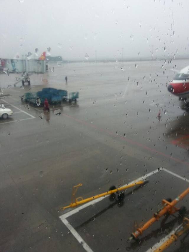 刚上飞机的武汉,朦胧的窗外,下着小雨