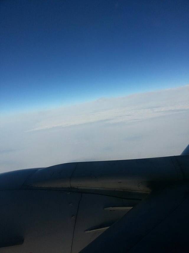 为了想看到蓝天白云买的白天的机票,很久没看到湛蓝的天和棉花似得白云了,我对天空有着一种说不清道不明的感觉,恋空癖吧可以算得上。蓝天白云围绕在身边的感觉真的太美好,刚上飞机的时候还担心看不到这样的美景,因为武汉的雾霾持续了好长一段时间...现在终于可以远离雾霾了 呵呵呵 心情别样美好。