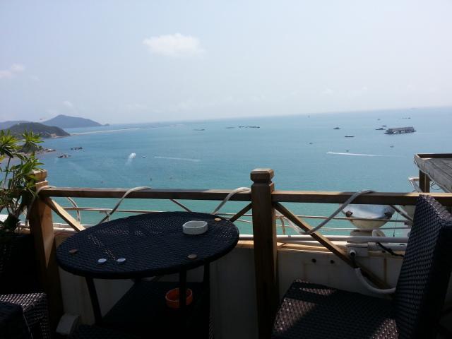 着重推荐这家旅店~!在大东海的夏日百货后面,想吃东西当然也很方便了。在一栋公寓楼的最顶楼,可以提前在去哪儿网上预定,我们订的房间是228一晚上,看不到海呢,估计看到海的应该300以上,不过他的海景房是真心不错的,落地窗,躺在床到就能看到整个大东海,晚上可以在楼顶吃宵夜,夜景也很不错呐...晚上楼下海边有酒吧,可以喝啤酒看演出。当然了,住在这里还有个好处就是离第一市场很近的 ,不多说啦好吃的动都在那。