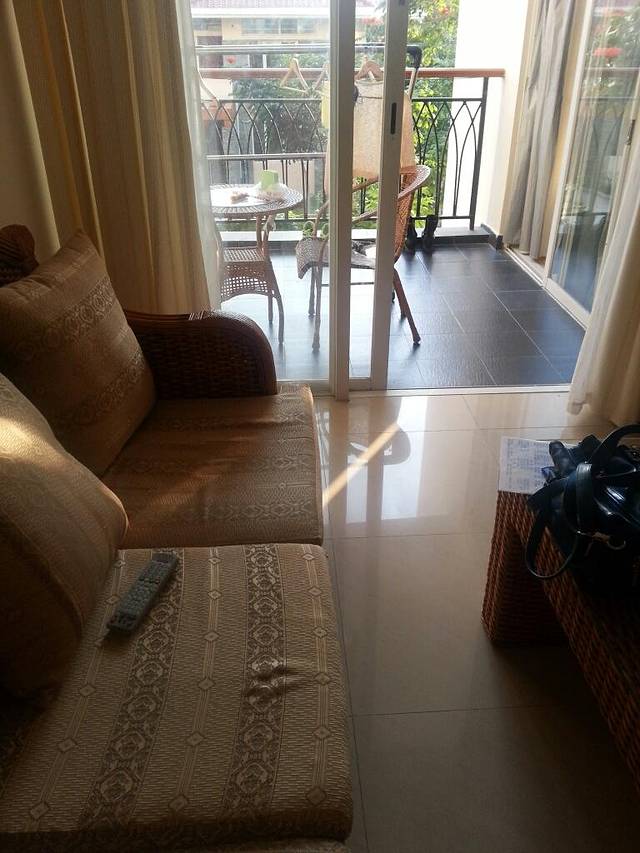真的是坐了好久的公交车,又不敢睡着,怕坐过站了。其实貌似也是差不多终点站的地方下的。度假公寓门前有一只腊肠狗,太可爱了,玩累了就跑到店门口守着。我们住的二楼,一进门给我的感觉就是一个字:大!这个公寓也是之前在网上看评价定的,293一晚。来了以后果然如网上看到的一样大,而且挺干净卫生的,有阳台晾衣服,估计每个房间的布局都差不多 总之挺满意吧(就是离海边挺远的,附近都是高档别墅和度假酒店)。拖着行李从一个地方搬到另一个地方真的很辛苦,所以到了这里以后就边休息边吃水果,洗完澡趁阳光还在,我就迫不及待拍了几张,有阳光的房间就是美腻~
