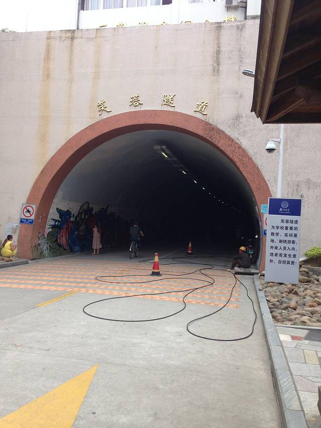 进去的时候是需要身份证的哦。最好还是买一份厦大的手绘地图,十元钱。地点标注的很清楚,厦大其实蛮大的,有了地图就不会迷路啦~厦大芙蓉隧道必去,不得不承认,厦大真的是藏龙卧虎,隧道的墙上挤满了各种风格的涂鸦作品,要不是我不是学绘画专业的,真的很想 留下自己的一笔~但是有一点不得不说,明明很美丽的涂鸦,为什么那么多人在这里写一些乱七八糟的话,把美丽活活破坏了~思源谷太远,为了拍照片,跑了好远终于到了,结果也没进去看看~