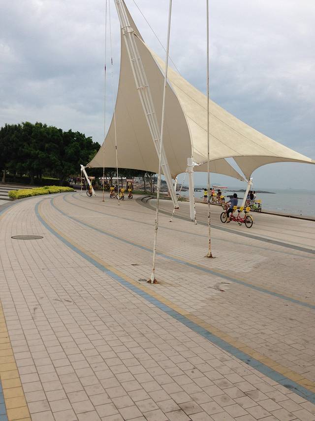 租了一辆单人自行车便出发了~忘记多少钱了,但是是可以还价的。路上有很多拍婚纱照的,我也厚脸皮的祝人家幸福~环岛路的景色很美,厦门有专门的自行车道,很方便,我一路骑了很远,快累死了~~看来年轻小伙子就是活力多啊,哈哈。