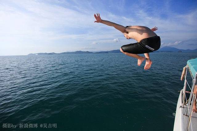 环岛的航行是一种极佳的放松休闲方式,在海上每个人都可以尽情享受兰卡威令人叹为观止的美丽景色。当你的船荡过海岛间波光粼粼的水道时,享受一下清爽宜人的凉风和太阳温暖的光线吧。 绕孕妇岛和湿米岛游览一圈约需要四个小时。你也可以租一条小船,一边享用鸡尾酒一边欣赏醉人的日落美景。 我们预订了AWANA 港的观光艇(每人马币250马币,包括4小时的海上漫游,无限量的鸡尾酒和烧烤自助)烧烤、潜水或前往其他海岛的特别线路也可以根据游客的需要安排。 TIP摄影小贴士:离的越近,画面更有动感,超广角下的近距离拍摄,动感,快乐,一切尽收镜头之下! (Canon5DII 镜头 EOS:16-35 f:2.8)