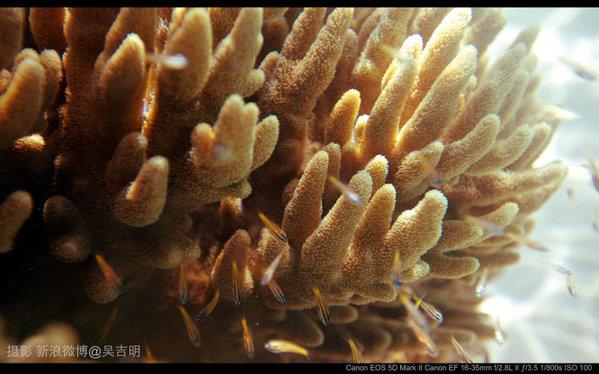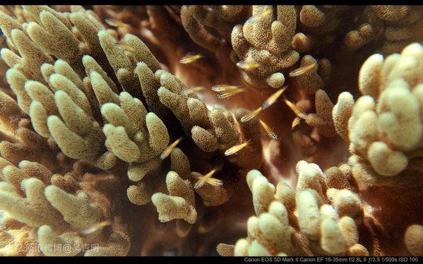 这里是世界最佳的“漫潜”胜地之一,每天的海中漫步是这里每天的必备功课。拍的一些片子。来自Canon 5DII / Conon650D / EF 16-35 F/2.8L / EF8-15mm f/4L USM 鱼眼镜头/EF17-55 f/2.8 简易单反潜水罩。这可真的是鱼眼中的世界!